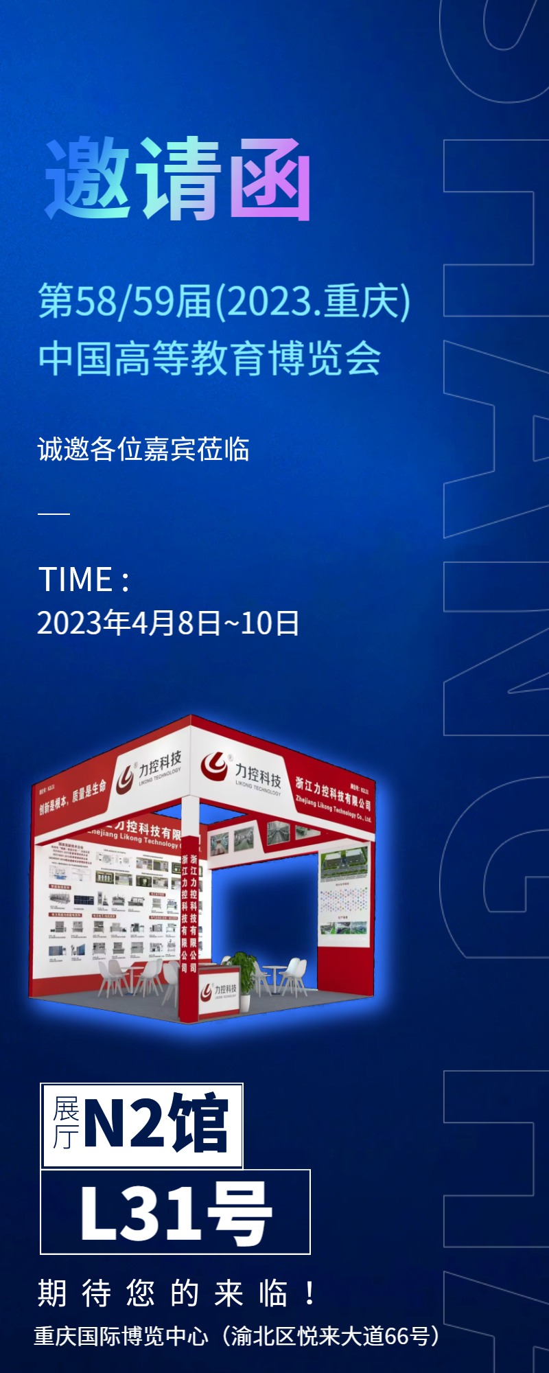 浙江力控將于23.4.8-4.10 參加第58·59屆中國高等教育博覽會 ( 2023·重慶 )。展位號:N2L31。